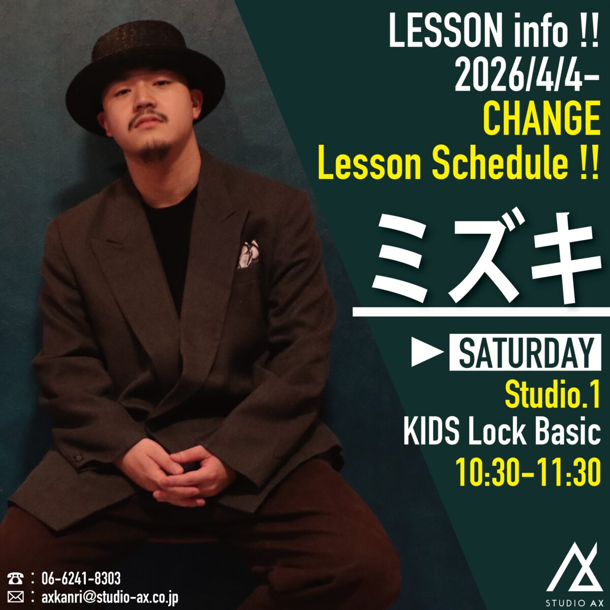 💎2026/4/4〜 ミズキ KIDS Lock Basicクラスレッスン日時・スタジオ変更のお知らせ💎